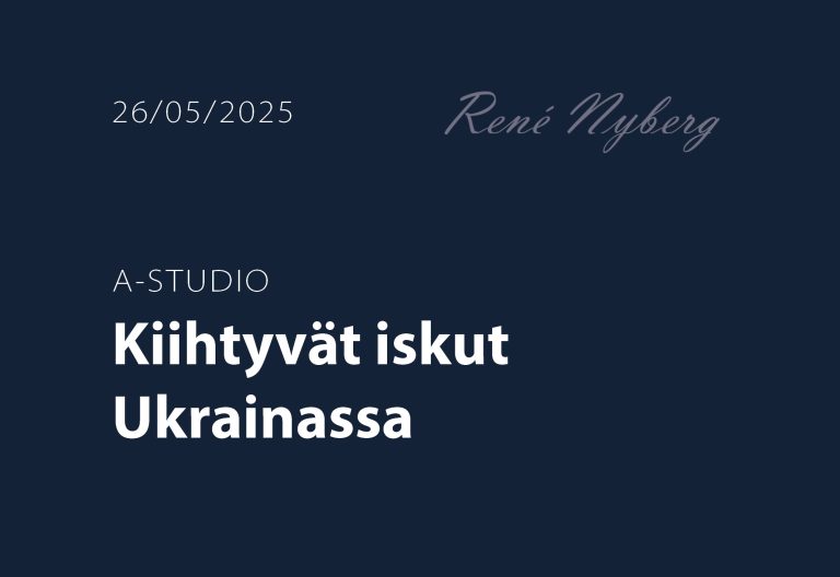 Venäjä iski Ukrainaan sadoilla drooneilla ja useilla ohjuksilla. Mitä Venäjä tavoittelee ja mitä tekee Yhdysvallat? Vieraina yliopistonlehtori Kimmo Elo Itä-Suomen yliopistosta, entinen Suomen Moskovan-suurlähettiläs René Nyberg ja Nordic West Officen toimitusjohtaja Charly Salonius-Pasternak. Työttömyys kasvaa edelleen. Miten yritykset voisivat palkata uusia tekijöitä? Keskustelemassa OP Yrityspankin toimitusjohtaja Katja Keitaanniemi, SAK:n pääekonomisti Ilkka Kaukoranta ja Suomen Yrittäjien toimitusjohtaja Mikael Pentikäinen. Juontajana Sakari Sirkkanen.