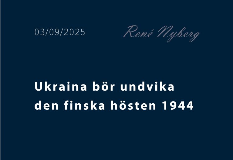 För att vända blicken tillbaka till kriget i Ukraina, vågar jag påstå att Kiev måste hålla fronten och förhandla segt och bestämt. Men Putin är inte Stalin som visste när han skulle sluta. En sak är dock klar. Ukraina har idag Europas starkaste armé och en modern militärtradition att vara stolt över. Därför måste Ukraina undvika modellen finsk höst 1944, dvs. begräsningar av sin suveränitet. +++